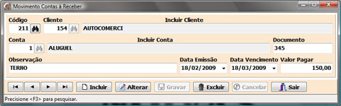 Movimento Contas à Receber, Contas à Pagar, Caixa.