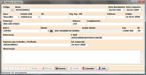 Nela temos todo o cadastro do sistema como cadastros de cidades, clientes, condição de pagamento, empresa, fornecedores, funcionários, grupo, plano de contas, produtos.