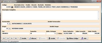 É um sistema comercial voltado para a área de locação de roupas.
